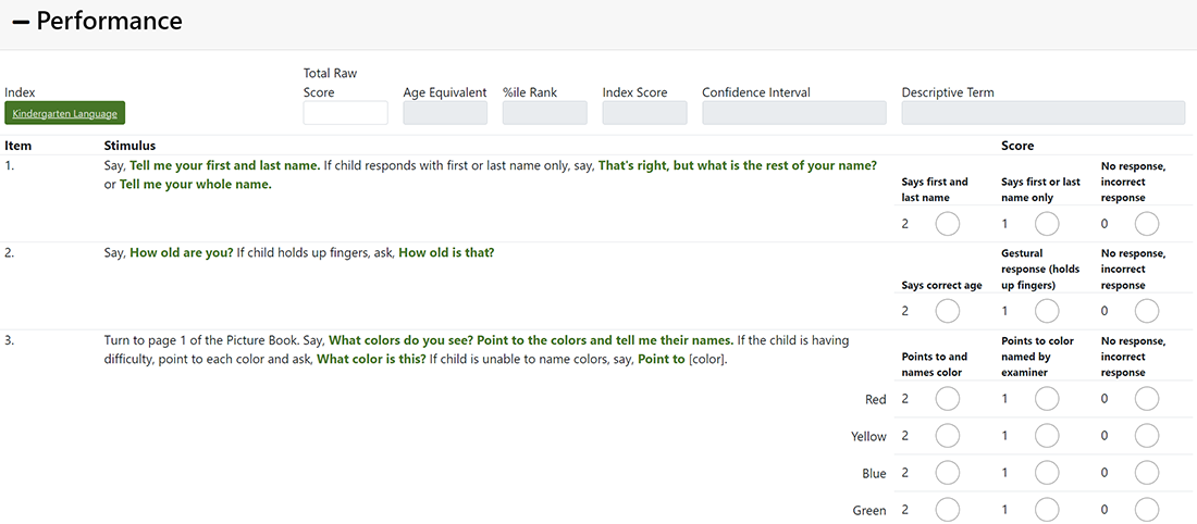 This online scoring code allows the examiner to score item-level performance on the KLST-3 using the Examiner Record Form embedded in the KLST-3 Online Scoring and Report System rather than using paper forms. Includes 50 uses.